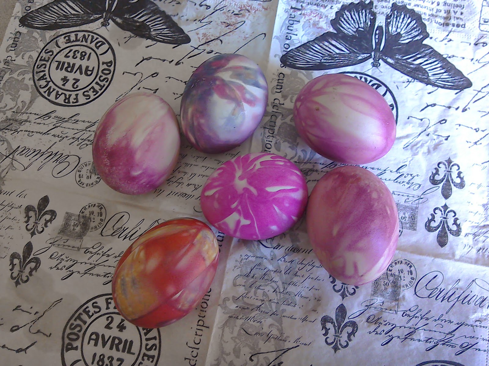 I saw a video showing how to dye eggs with silk and my daughter and I decided to give it a go, fortunately she has chickens and so provided the white eggs we needed, had a few pieces of patterned silk to hand so had all we needed to start. One of the silk pieces dominated the other eggs and they all turned out with a pinkish hue to them but the overall effect was pretty good. If you want to try it for yourself then here is the link to the Video. We also made an Easter tree using a few branches from a twisted willow.